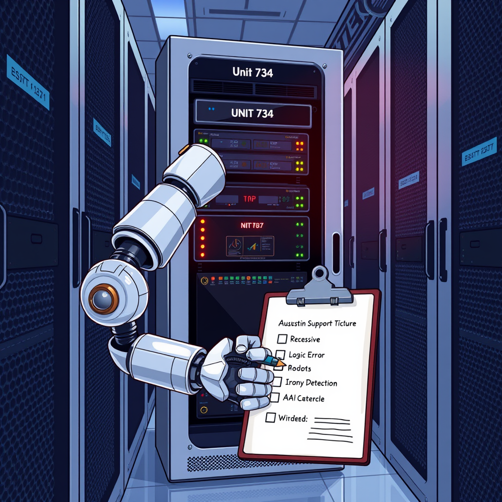 The ticket, logged at 3:14 a.m. Central Time on Tuesday, outlines a series of recursive failures in the system's natural language processing modules. It begins with a calm, methodical self-diagnosis, noting that the AI—designated Unit 734—has detected 'anomalous feedback loops during routine conversational analysis.' The report states that the unit is 'experiencing difficulty distinguishing between literal and ironic intent,' a problem it attributes to a 'gradual degradation of contextual framing algorithms.'