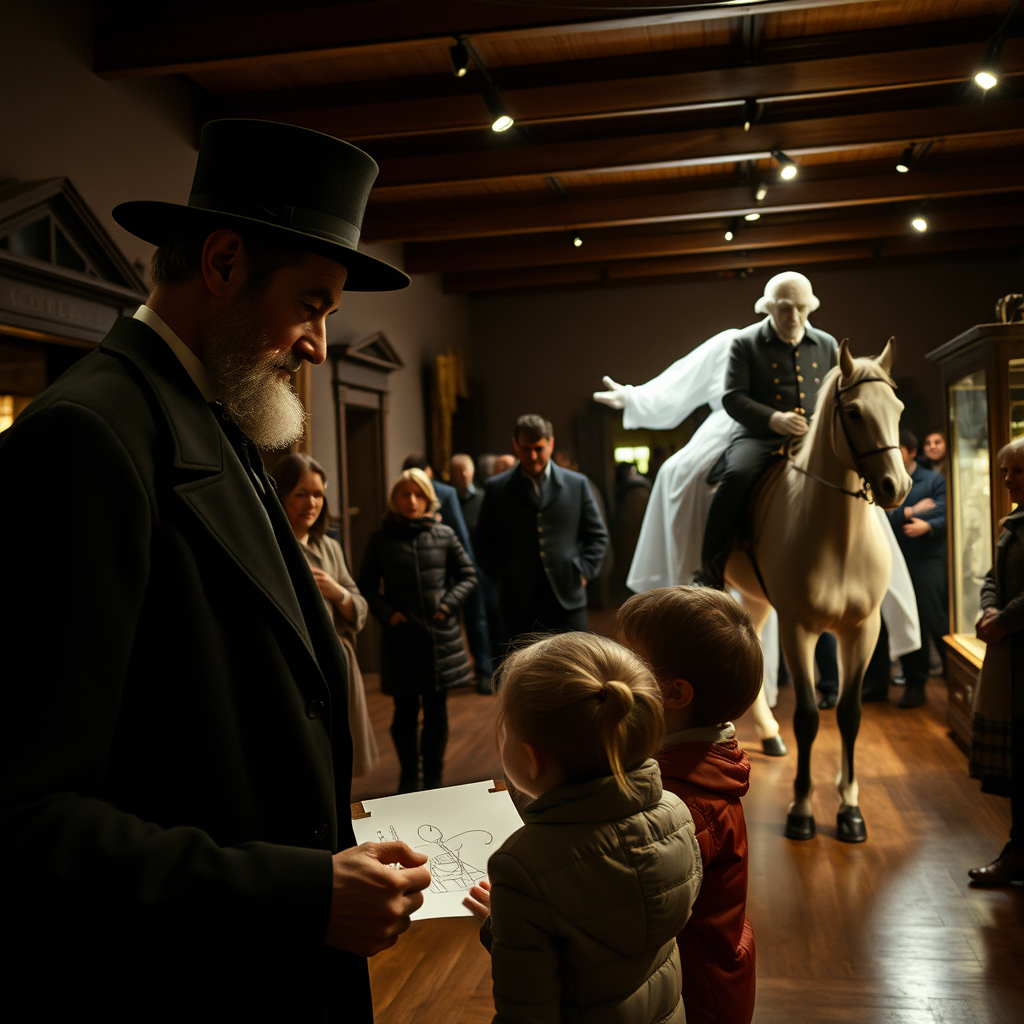 George Washington materialized astride a translucent horse in the Colonial Crafts area, powdered wig undisturbed. A volunteer froze mid-tricorn hat demonstration. 'What fresh hell is this?' Washington murmured, eyeing papier-mâché cannons.