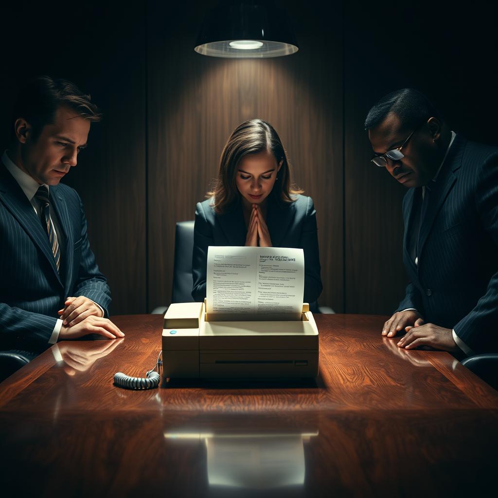 Finally, with a whine that pierced the tense silence, the machine whirred to life. The team gathered around, a congregation awaiting a sermon. The paper emerged, not with a crisp forecast or a bullish prediction, but with a single, smudged sentence: 'RE: SUPPLY ORDER #B-8832 – YOUR REQUEST FOR 3 PACKS OF BIC BLUE PENS IS BEING PROCESSED.' The bathos was so profound it had its own gravitational pull. Rigsby stared at the page, his face a mask of performative empathy for the machine's apparent confusion. 'It's… metaphorical,' he declared, crumpling the paper. 'The pens represent liquidity. The processing delay signifies market friction. This is actually quite bearish for Q4.' His colleagues nodded, a sea of grim acceptance, and returned to their desks to adjust their models based on the stationary crisis.