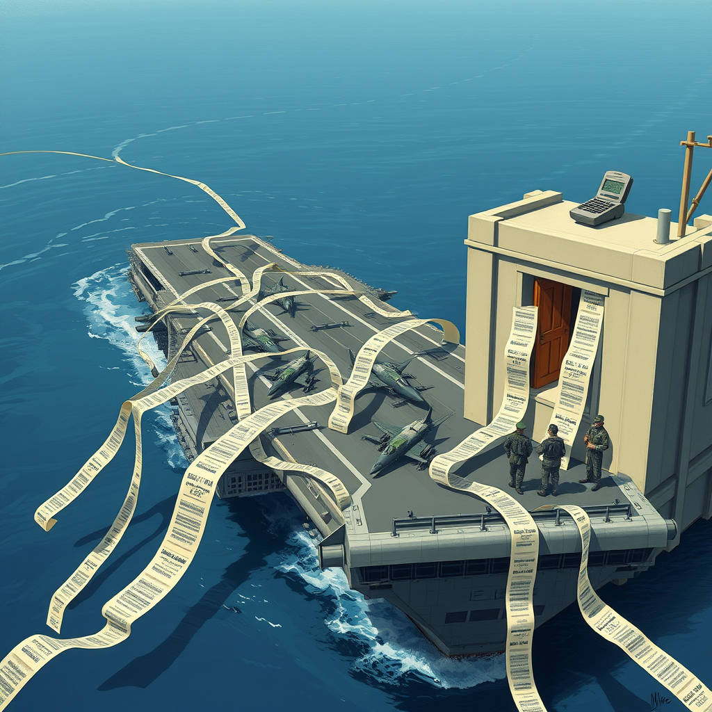 This is the real story, the blood-smeared ledger of American power, and it's being written not in the Situation Room but in some fluorescent-lit Pentagon sub-basement by a gaggle of accountants wearing green eyeshades and a look of pure, uncut fiscal terror. The word came down this morning, a frantic whisper on a scrambled line from somewhere deep inside the beast: Stand down. Stand down, you mad bastards, because the bean counters have spoken. The great war machine, a roaring, gasoline-soaked monster primed to unleash hellfire on the Persian Gulf, has been idled by the most potent force in the known universe: a favorable expense report.